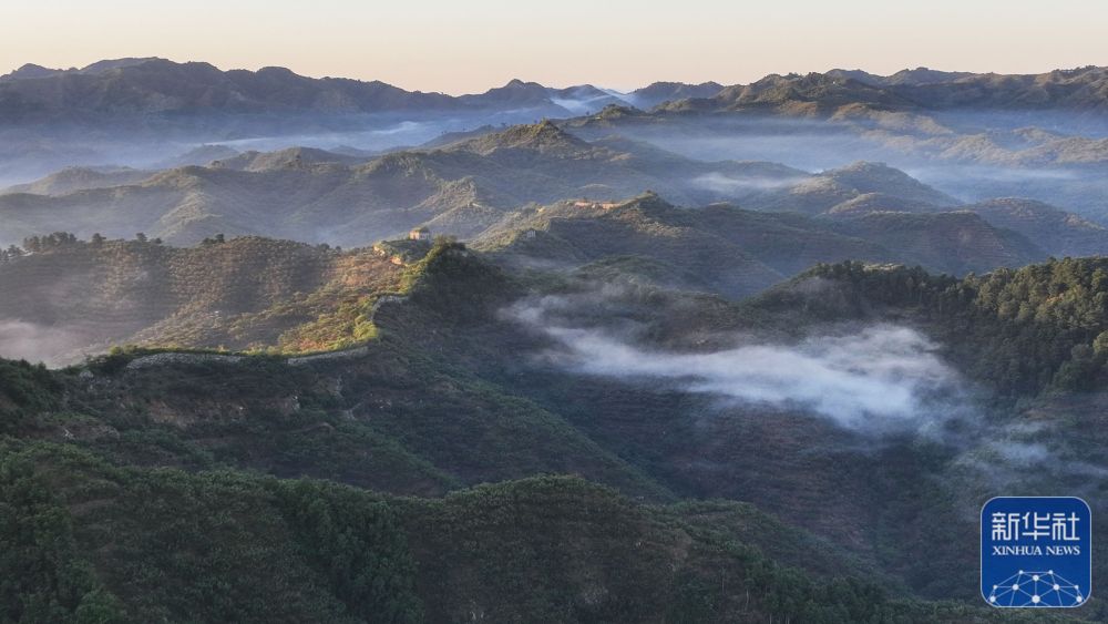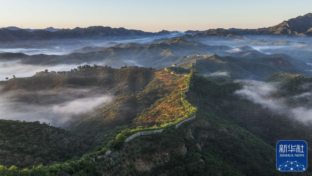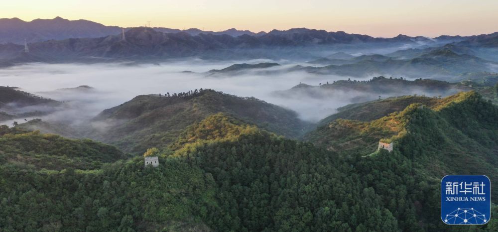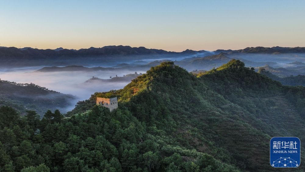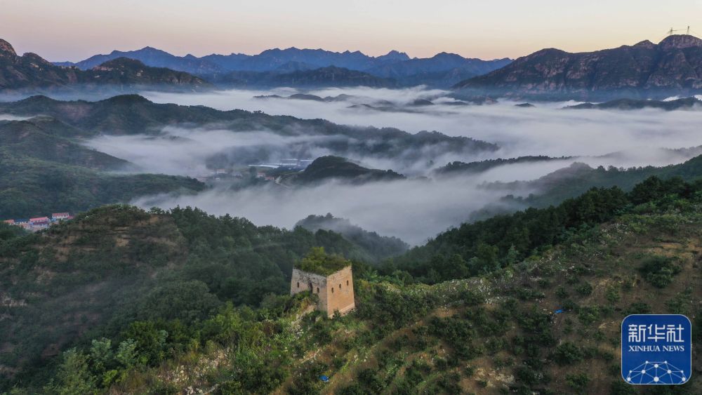 9月20日拍摄的河北省遵化市境内的古长城晨景(无人机照片)。