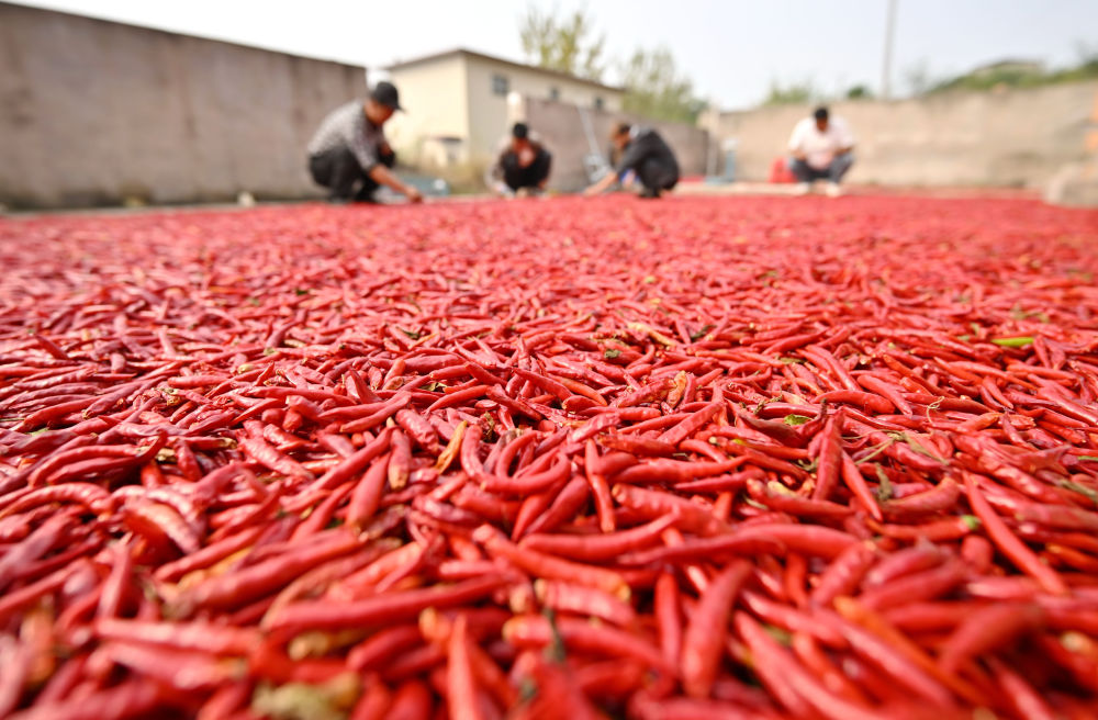 金秋时节,河北省滦州市油榨镇种植的朝天椒迎来收获季。近年来,河北省滦州市依托自身农业优势,结合市场需求,引导农民采取“合作社+农户”的模式因地制宜发展朝天椒种植,逐步形成集育苗、种植、销售于一体的辣椒产业链,有效促进农民增收。 新华社记者 杨世尧