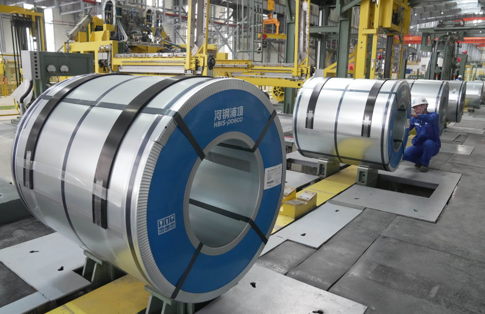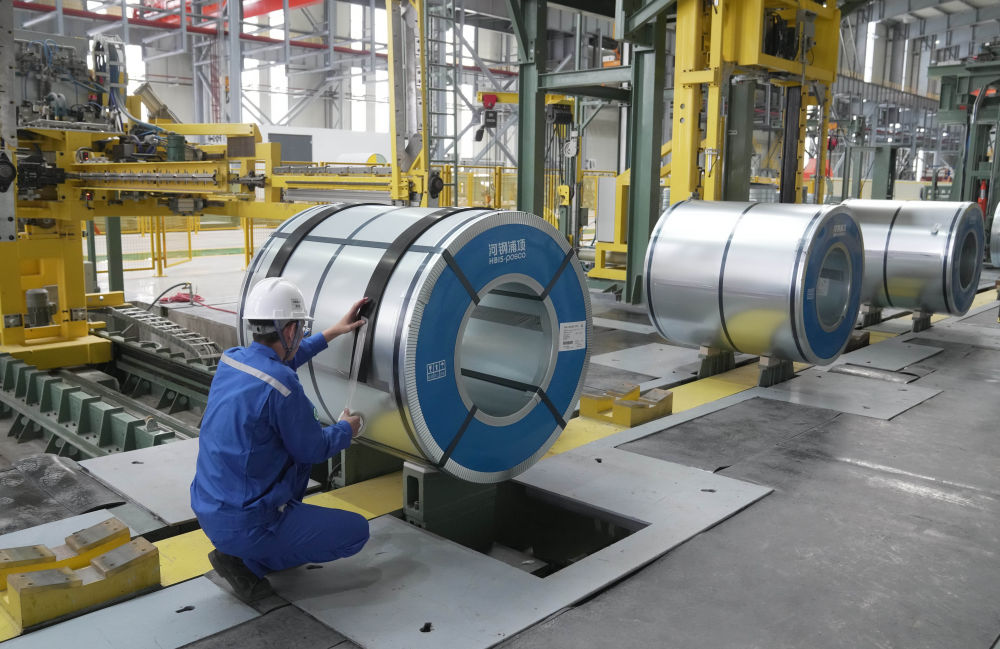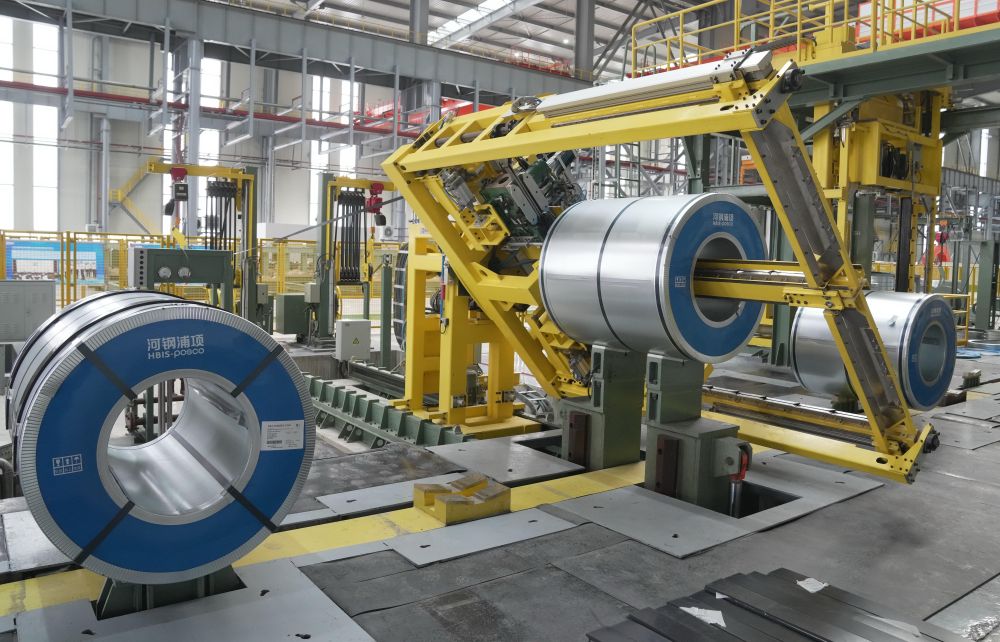 ↑10月19日,工人在河钢浦项汽车板合资项目生产线上工作。新华社记者 杨世尧 摄