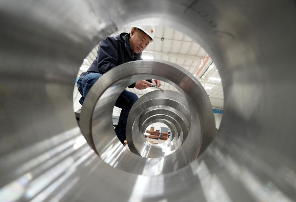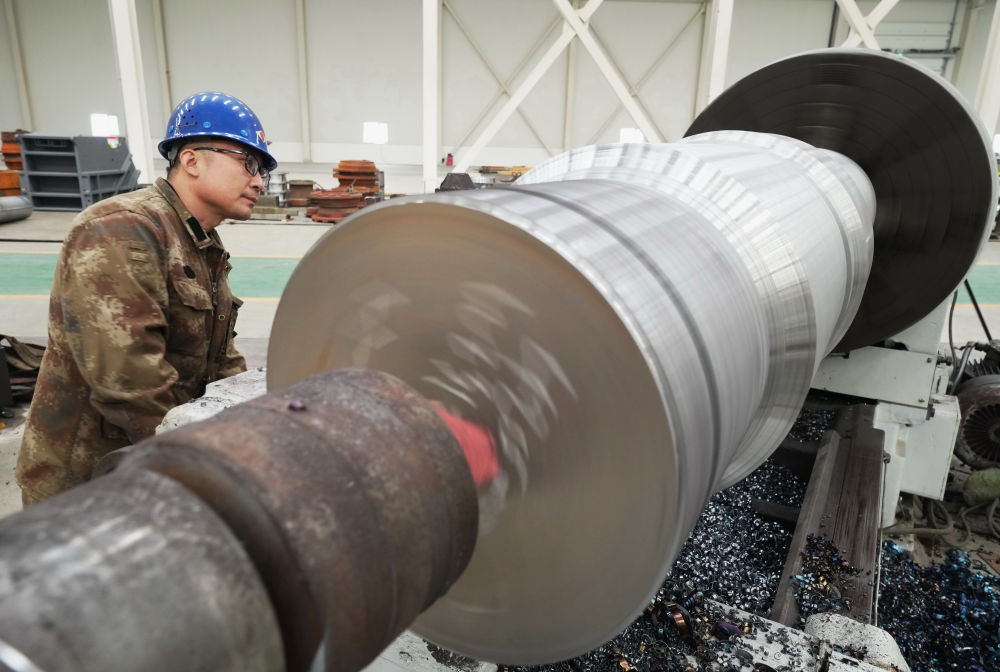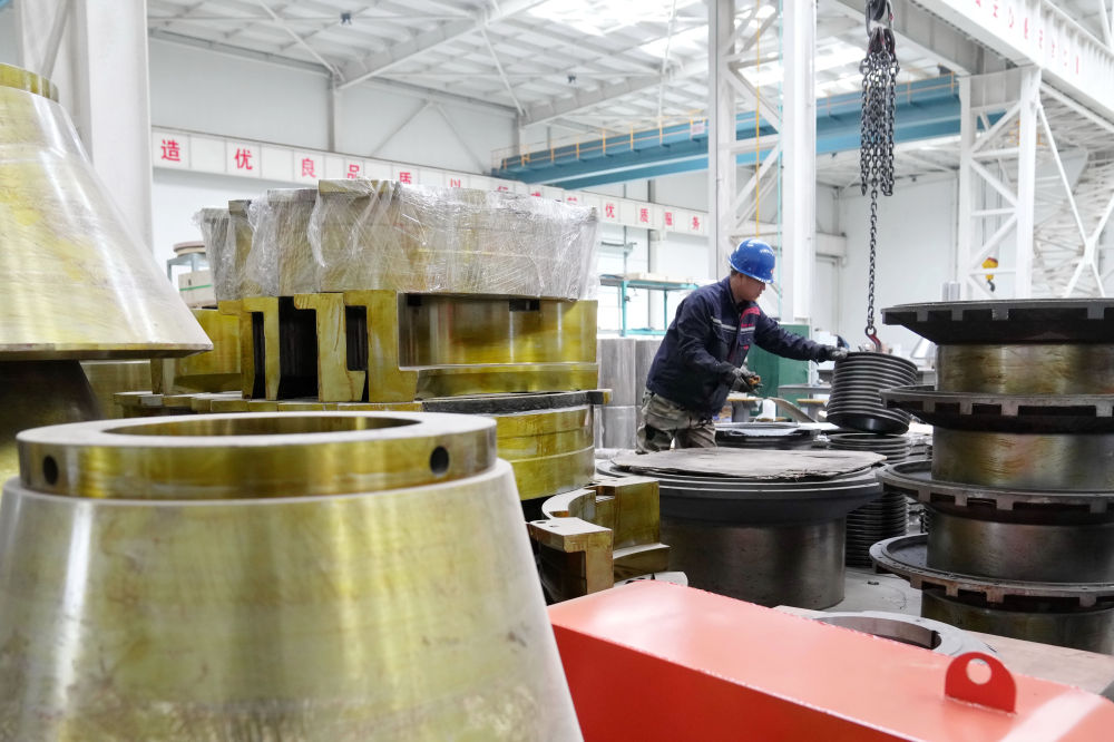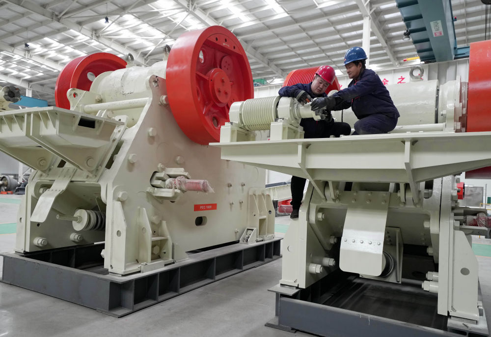 ↑11月16日,工人在河北省遵化市一家矿山机械设备企业的生产车间工作。 新华社记者 杨世尧 摄