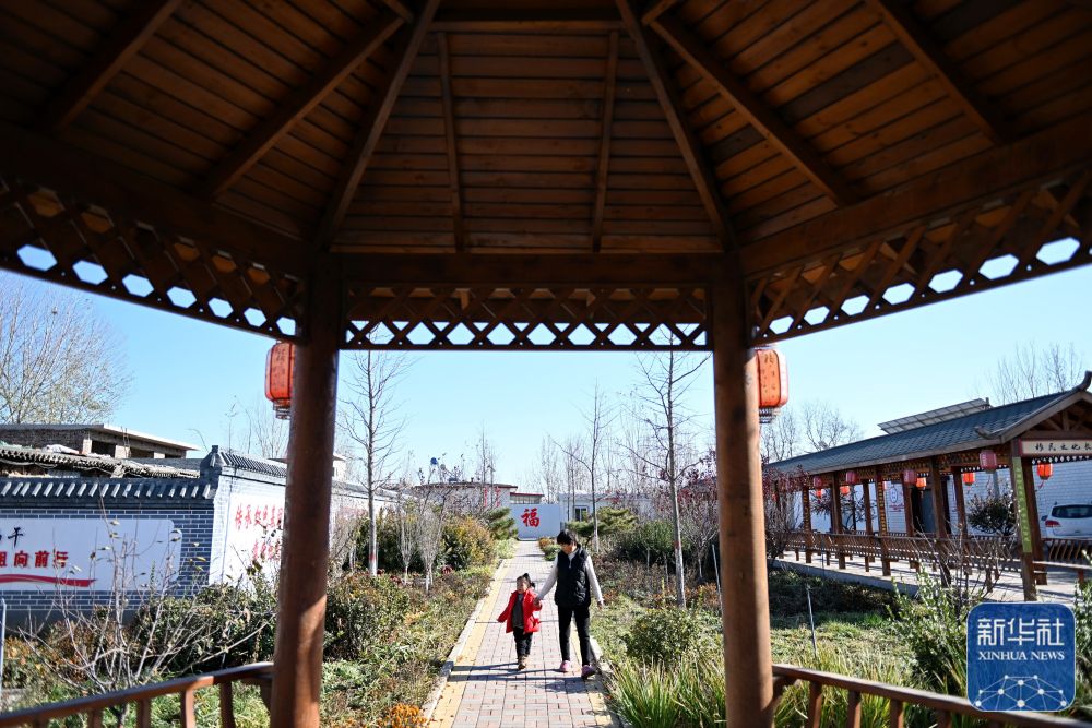 11月17日,河北省滦州市榛子镇晒甲岭村村民在村内小游园里游玩。