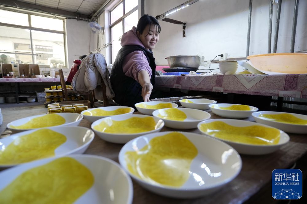 11月17日,河北省滦州市榛子镇哑叭庄子村一家瓷器加工企业的工人在整理瓷器。