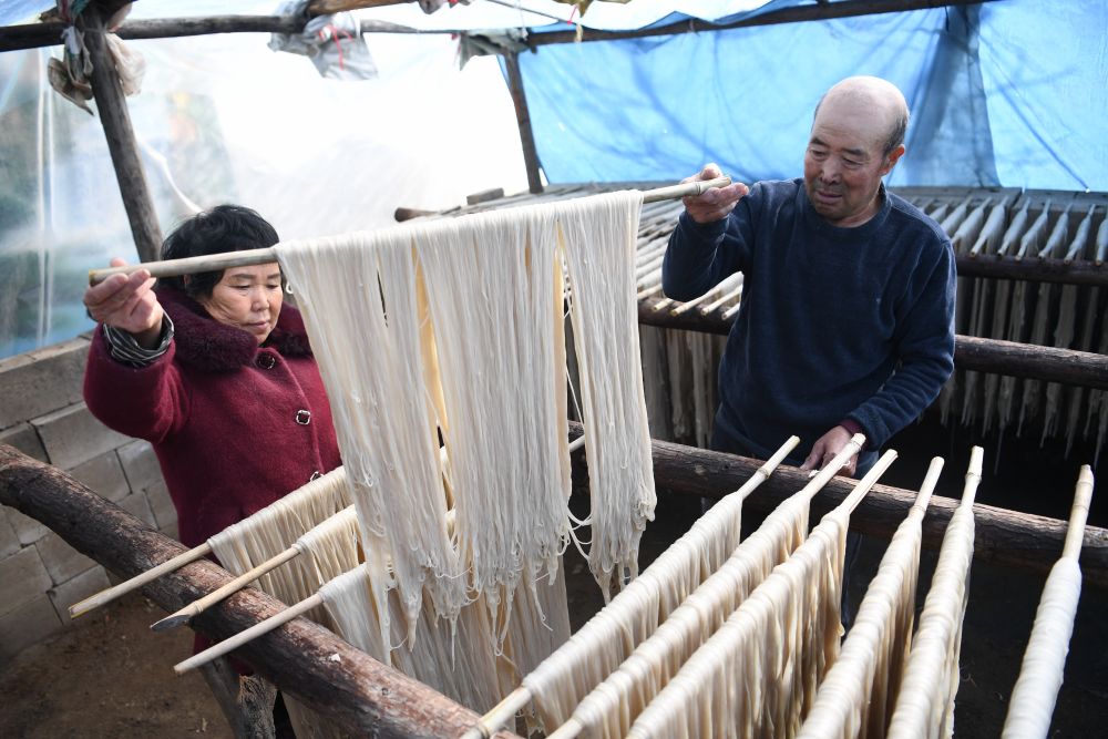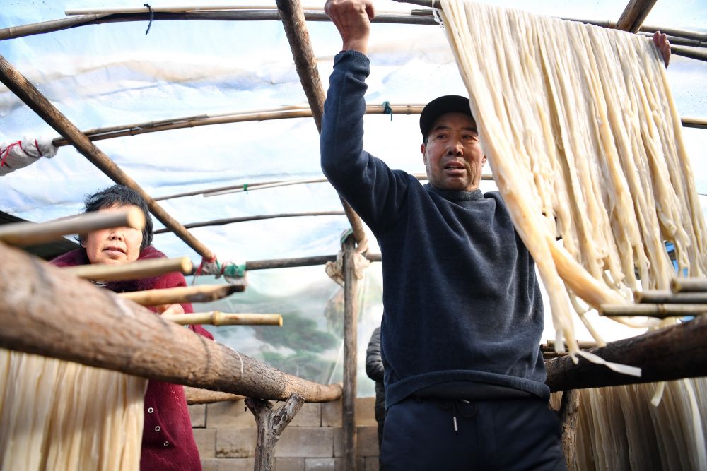 初冬时节,气温骤降,正是传统手工粉条加工的好时节。在河北省迁安市,农民们忙着加工晾晒粉条供应市场。近年来,迁安市着力构建“一村一品”产业发展格局,鼓励有条件的村庄和农户利用冬闲时节从事粉条加工产业,不断开拓省内外市场,有效拓宽群众增收途径。