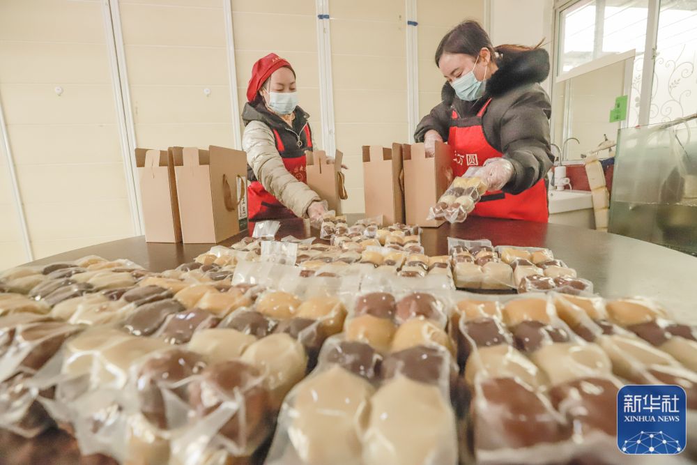 入冬以来,河北省遵化市娘娘庄镇迎来黏饽饽加工旺季,村民忙碌在黏饽饽加工作坊,赶制产品,供应市场。