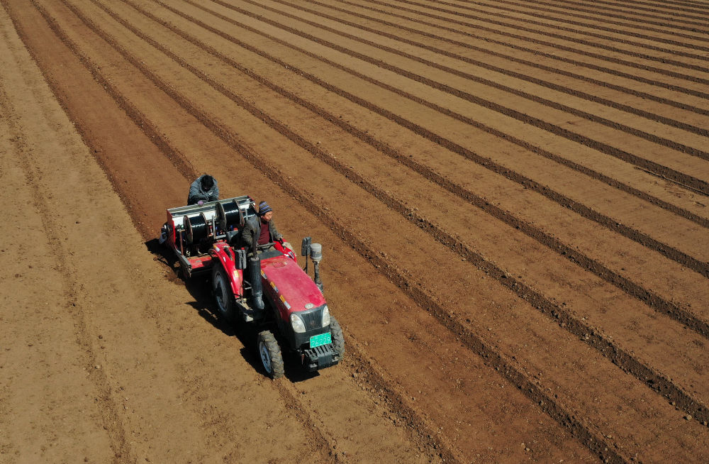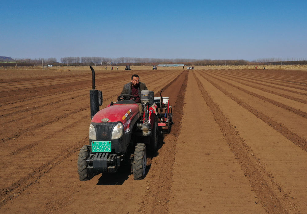 随着气温回升,河北省各地的农民开始浇灌农田、适时播种和对果树进行春管等农事工作,田间地头呈现一派繁忙的春耕图景。