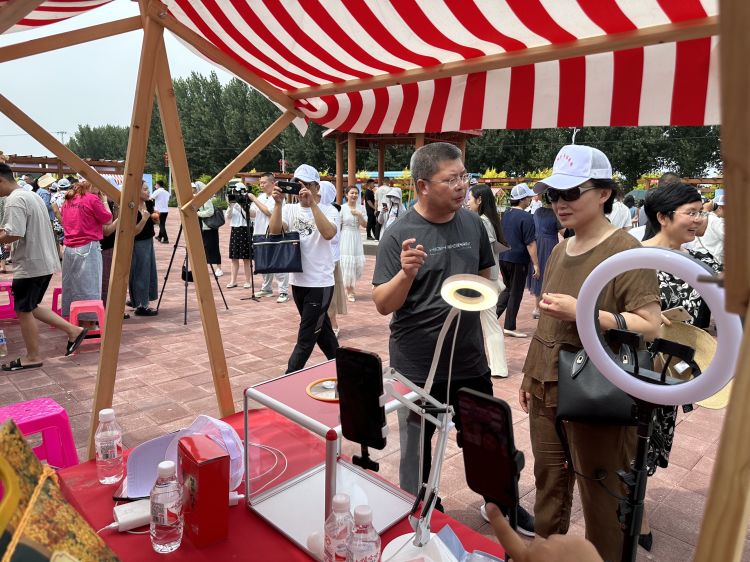 为推动我县特色农产品销售,助力乡村振兴,6月27日,滦南县在省级乡村振兴示范区——东黄坨镇举办了“凝聚巾帼力量 助力乡村振兴,巾帼助农电商直播赶大集活动”。唐山市妇联党组书记、主席魏明,县委副书记孔凡玉,县委常委、副县长刘晓,县政府副县长张广平,县政协副主席刘郁红,市农业农村局市场信息处处长王亚滨出席活动。滦南县农业农村局、县妇联、县文旅局等相关县直单位主要负责同志,各镇乡村振兴工作主管副职及巾帼助农代表参会。