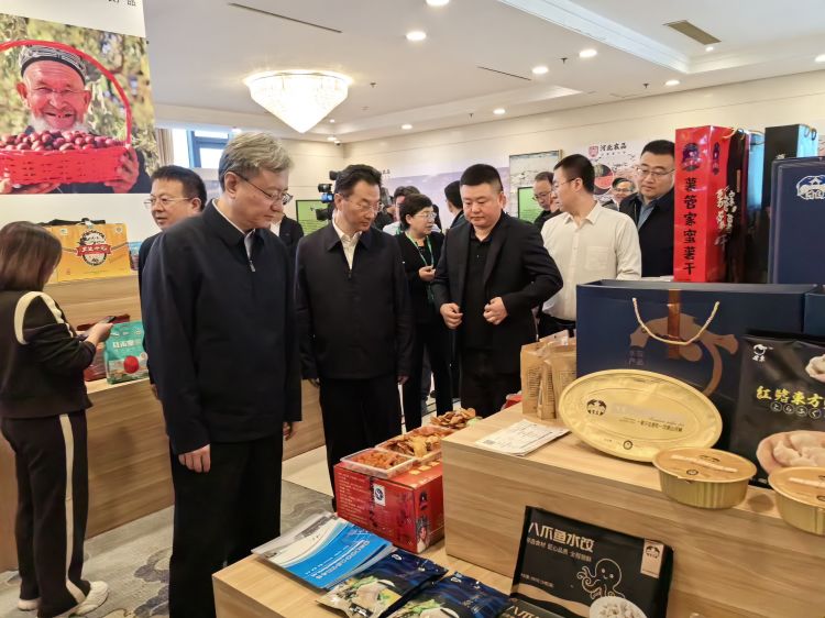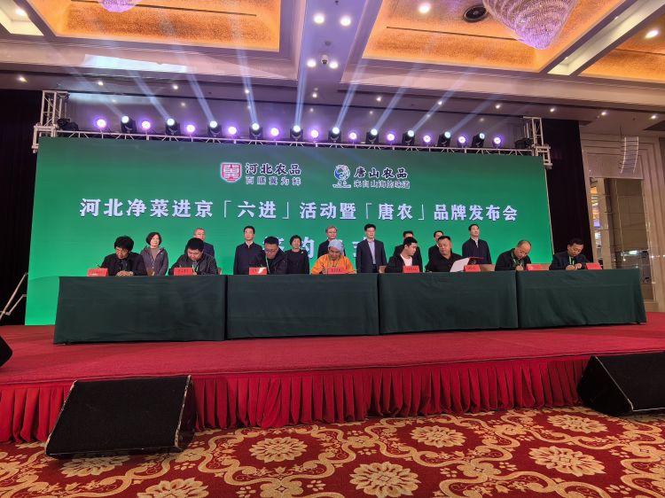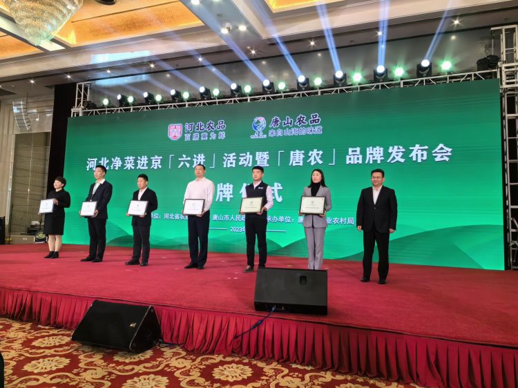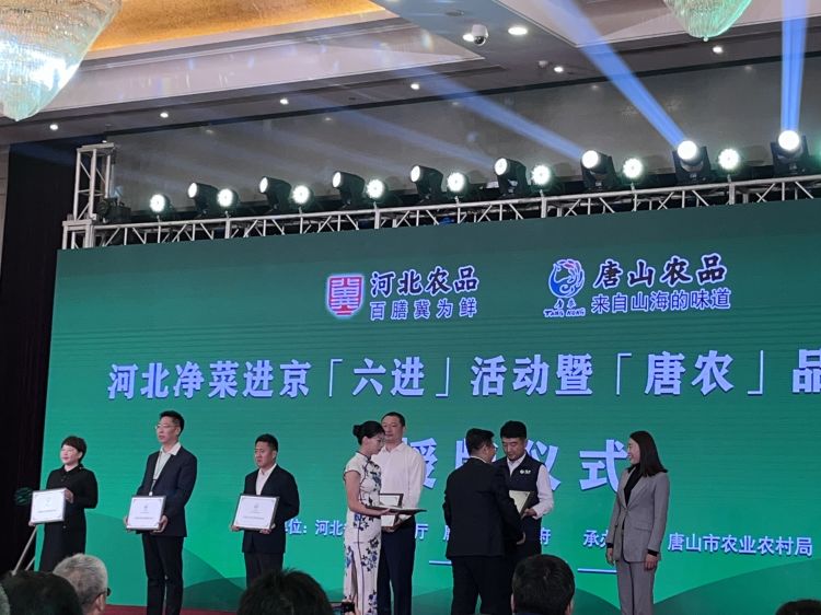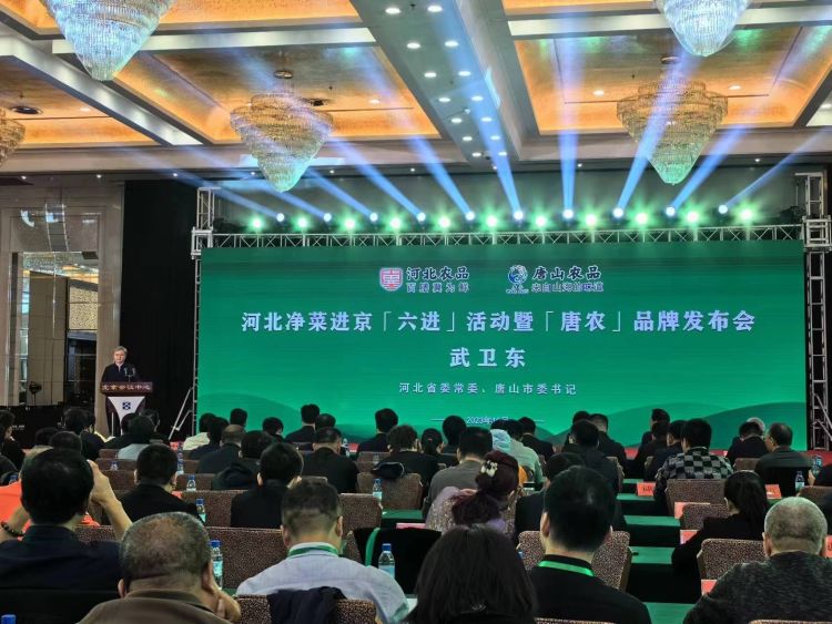 河北省农业农村厅党组成员、副厅长孙晨光,北京市商务局党组成员、副局长李燕凌,农业农村部市场与信息化司副司长刘涵,河北省委常委、唐山市委书记武卫东等领导先后致辞。唐山市委副书记、市人民政府市长田国良向作为14家“唐农”农产品区域公用品牌入驻企业之一的唐山海都水产食品有限公司授牌。