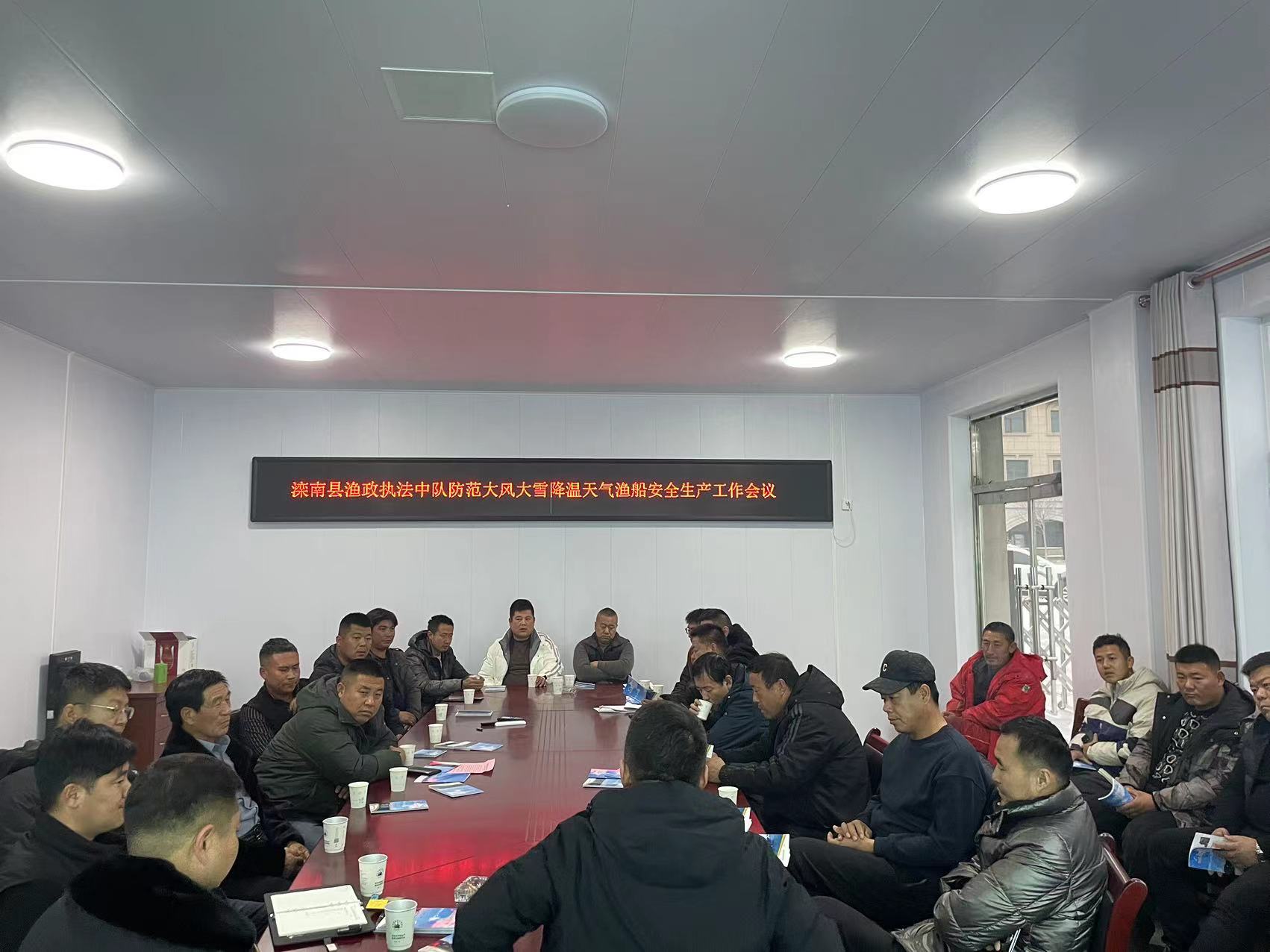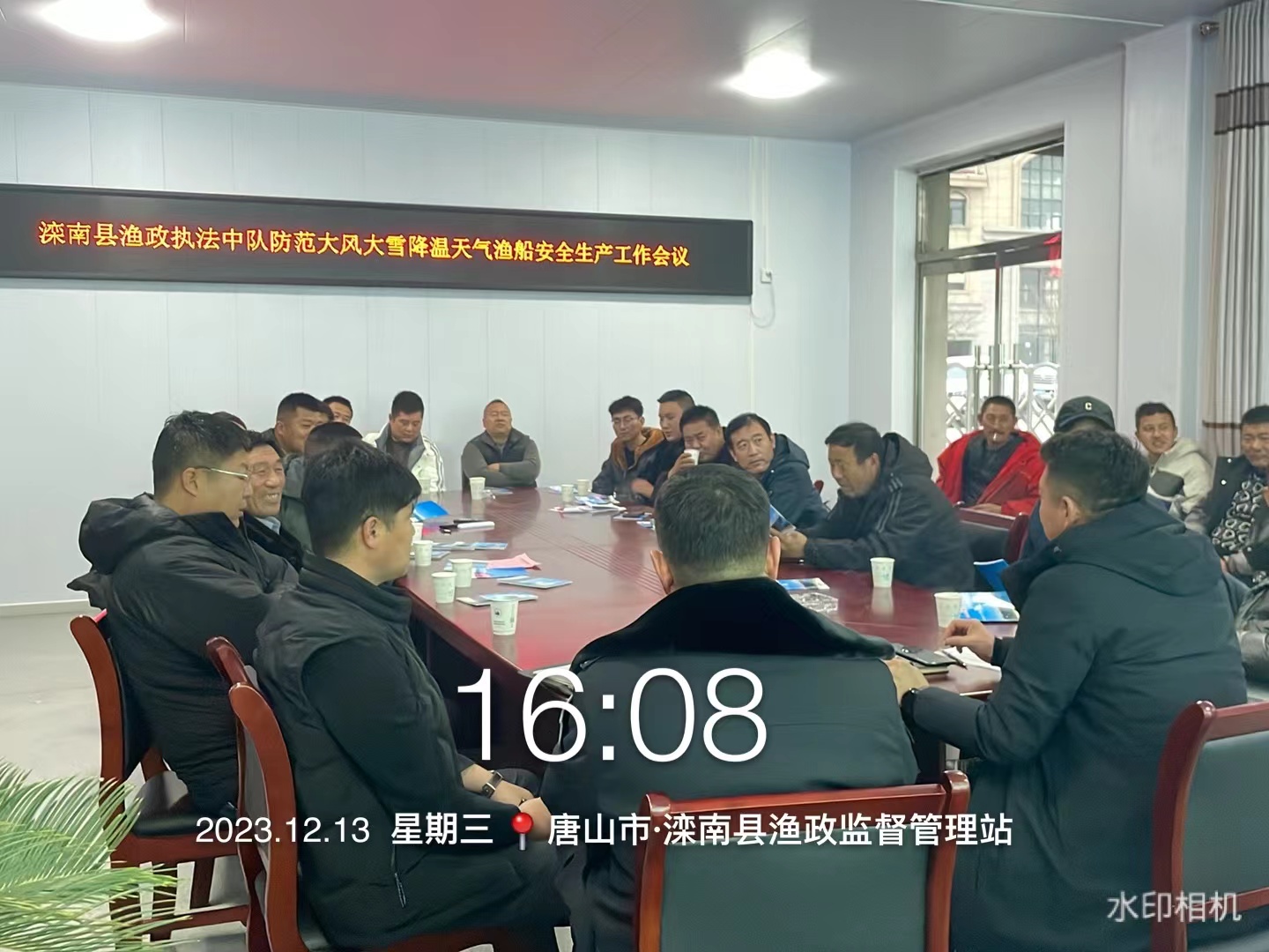 为应对大风暴雪恶劣天气,传达市局渔业安全生产调度会安排部署,12月13日,滦南县农业农村局渔政执法中队组织船队长召开防范大风大雪降温天气渔船安全生产工作会议。会议主要围绕冬季大风大雪降温天气,各船长要提高安全生产责任意识展开。并建立船队长联系群,督促渔民回港避风、渔船靠港防火防风防雪,谨防冬季落水事故发生,做好各项大风暴雪防范措施,切实保障我县渔民生命财产安全。
