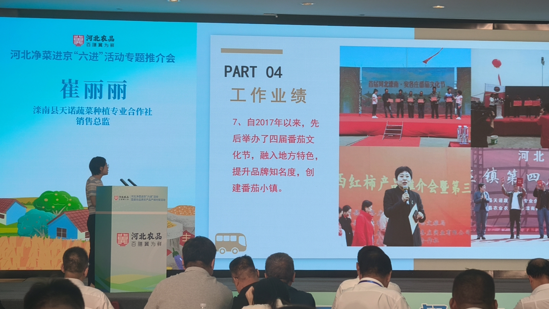 为贯彻落实京津冀协同发展战略,推进京冀两地农业领域合作交流,拓宽优质农产品销售渠道,8月15日,由河北省农业农村厅主办的河北净菜进京“六进”活动在北京丰台区举办,“滦南安各庄番茄”再次代表我县参加产销对接活动,并代表唐山市上台做专题推介。河北省农业农村厅二级巡视员单守林出席活动,各地市农业农村局分管领导、特色品牌企业代表、采购商、经销商参会。