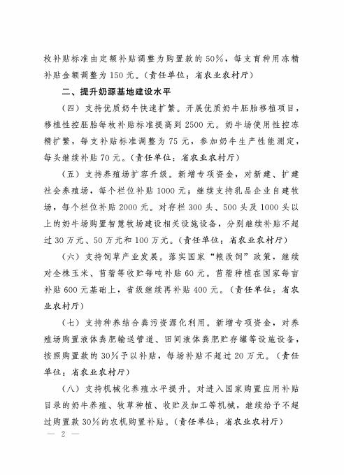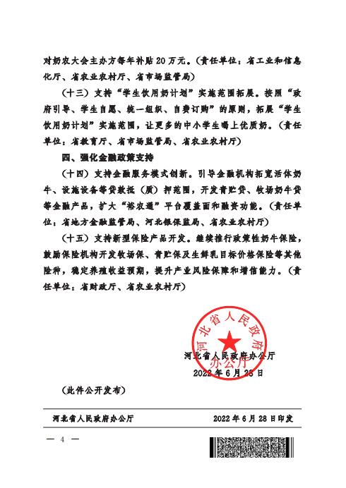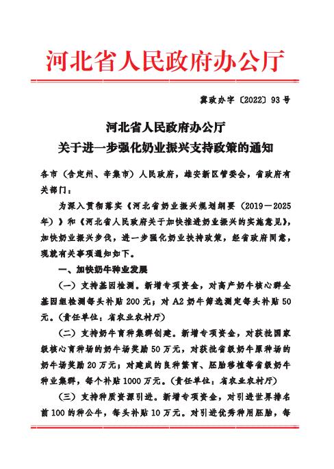 河北省人民政府办公厅关于进一步强化奶业振兴支持政策的通知